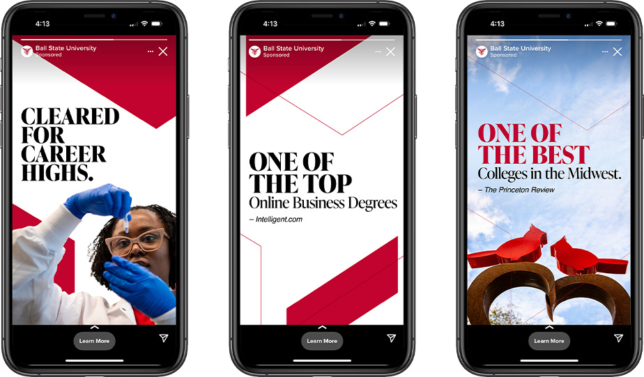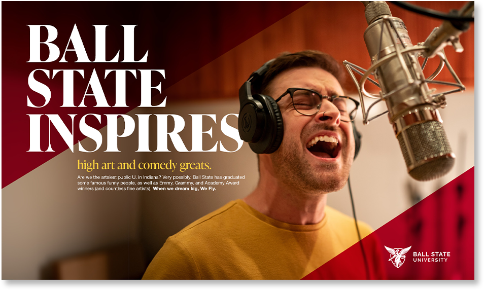 Situation: Nationally ranked and constantly upping its game, Ball State University wanted to evolve its existing brand (launched in 2017) and strategy to be bigger, cooler, smarter, and more uplifting. While its We Fly brand had been embraced by the internal Cardinal community, BSU still needed to increase undergraduate enrollment and raise brand awareness and visibility.